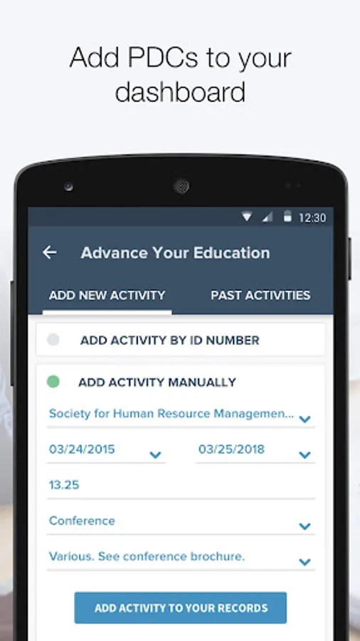 • Easily add your professional development credits (PDCs) under the Advance Your Education section.