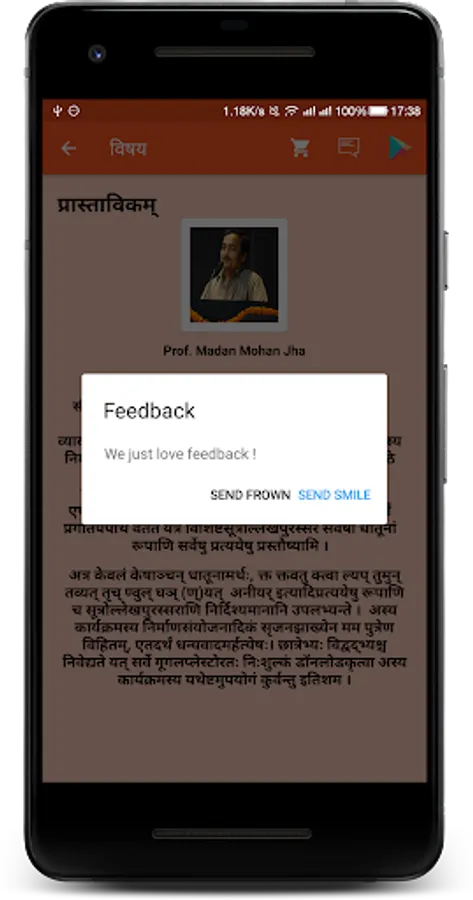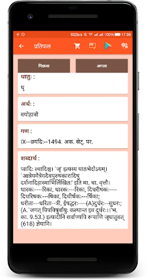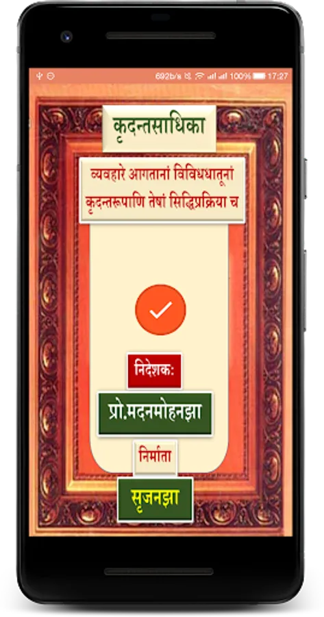 अत्र केवलं केषाञ्चन् धातूनामर्थः, क्त क्तवतु क्त्वा ल्यप् तुमुन् तव्यत् तृच् ण्वुल् घञ् (ण्)यत् अनीयर् इत्यादिप्रत्ययेषु रूपाणि च सूत्रोल्लेखपुरस्सराणि निर्दिश्यमानानि उपलभ्यन्ते । अस्य कार्यक्रमस्य निर्माणसंयोजनादिकं सृजनझाख्येन मम पुत्रेण विहितम्, एतदर्थं धन्यवादमर्हत्येषः। छात्रेभ्यः विद्वद्भ्यश्च निवेद्यते यत् सर्वे गूगलप्लेस्टोरतः निःशुल्कं डॉनलोडकृत्वा अस्य कार्यक्रमस्य यथेष्टमुपयोगं कुर्वन्तु इतिशम ।