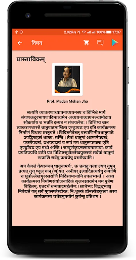 सत्यपि व्याकरणाध्यापनाध्ययनस्य च विभिन्ने मार्गे संगणकदूरभाषणादिमाध्यमेन अध्ययनाध्यापनञ्चामोदाय सौकर्याय च भवति इत्यत्र न संशयलेशः । विशिष्य चात्र व्याकरणशास्त्रे धातुपाठमाश्रित्य एऩ्ड्रायड एप इति कार्यक्रमस्य निर्माणं विधाय प्रस्तूयते । विदितमेवैतत् यत्पाणिनीयधातुपाठे उपद्विसहस्रं धातवः सन्ति । तेषां धातूनां आत्मनेपदत्वं, परस्मैपदत्वं, उभयपदत्वं च रूपं मम धातुरूपमाला एति एण्ड्रॉयड एप मध्ये अस्ति । सम्पूर्णकृदन्तरूपमालायाः कार्यं प्रगतिपपथि वर्तते यत्र विशिष्टसूत्रोल्लेखपुरस्सरं सर्वेषां धातूनां रूपाणि सर्वेषु प्रत्ययेषु प्रस्तौष्यामि ।