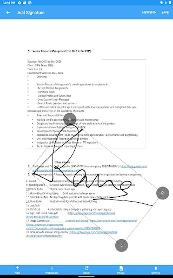 * Draw your signature or import image from gallery to draw on the selected image