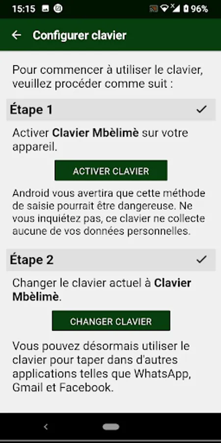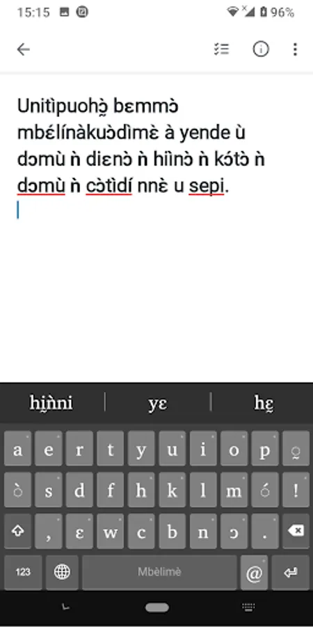 French letters that are not part of the mbèlimè alphabet are accessible by long pressing on the following keys: