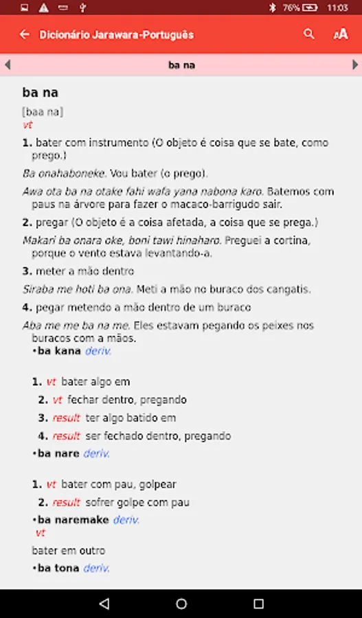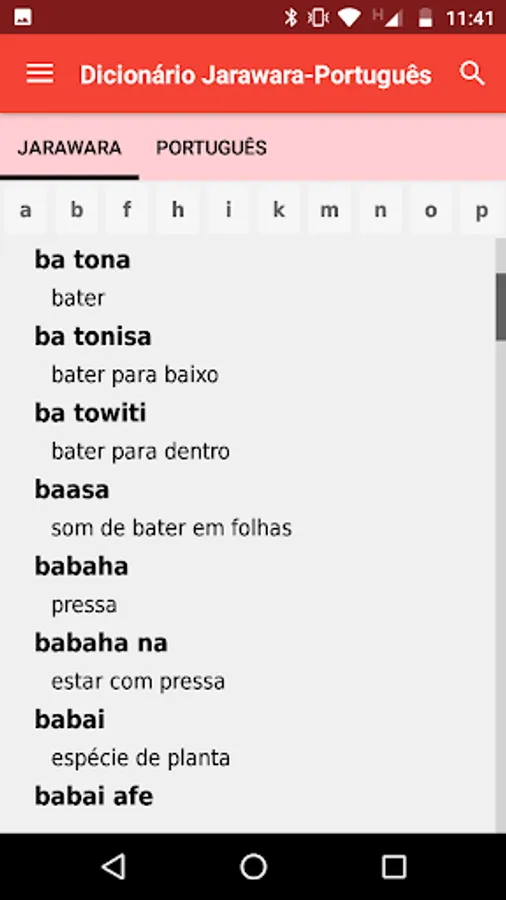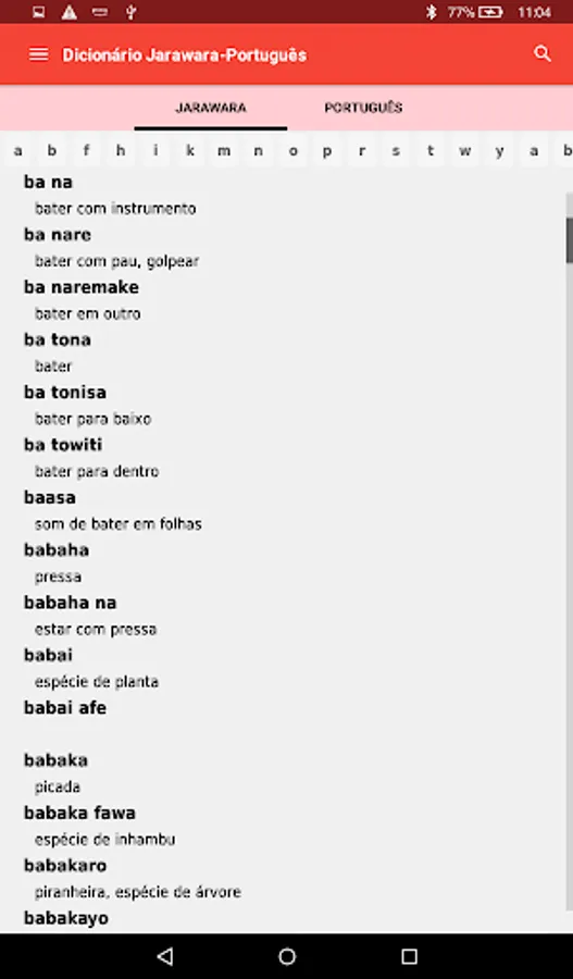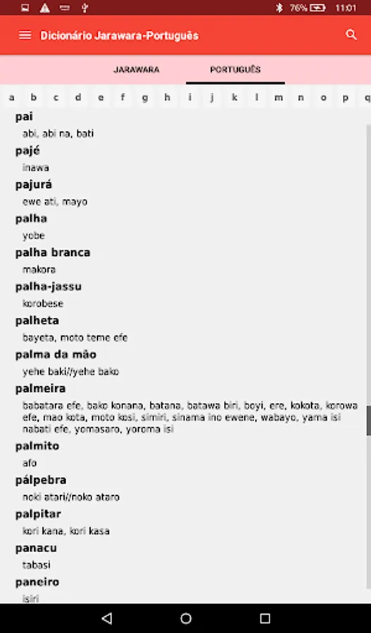 The dictionary has two parts: the main part is Jarawara-Portuguese, and the other part is a Portuguese-Jarawara index. For an introduction to the dictionary, which includes a pronunciation key, see https://www.silbrasil.org.br/resources/archives/72030.