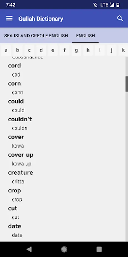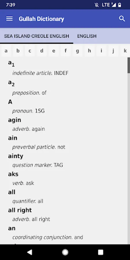 This is a preliminary, trial edition of a dictionary for the Gullah language. Also known as Sea Island Creole, Gullah is spoken by members of the Gullah Geechee community who live along the southeastern coast of the United States, mainly in South Carolina and Georgia, but also some in North Carolina and Florida. A more complete dictionary will follow.