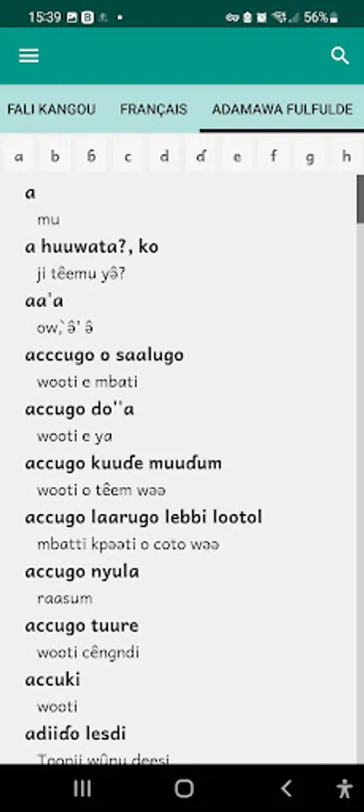 Fali Kangou - French - Fulfulde dictionary