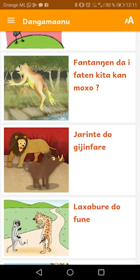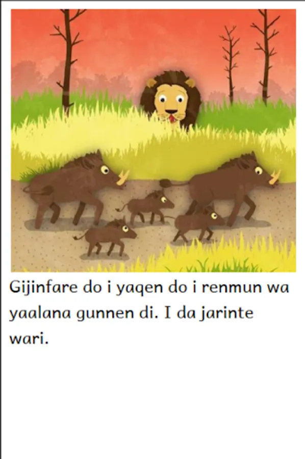 The "Dangamaanu" application is a collection of tales in Soninké which allows your children to discover the animals, the lion and the warthog, the hyena and the monkey, the ant and the pigeon, and why the toad has stains on it. his skin. Reading books for pleasure in illustrated version, to listen to in audio version and to translate into other languages. Educational and interactive books for children in preschool, ages 4 to 8, or going to kindergarten or primary school. These are great stories for entertainment, fun and learning. The moral of each story encourages children to think for themselves and to distinguish between good and bad, love and behavior in society. The texts of these books have short, simple and easy to read words. Take advantage of these five beautiful stories in Soninke to have a good time with your child. Your child can now read a story or tell a story in Soninké.