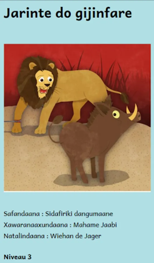 The books were created by SIL Mali for the LiNEMA project (Digital books for our children in Mali), a Reading For All project.