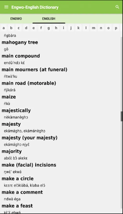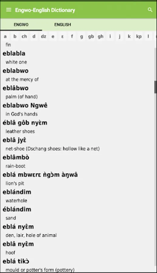 The name of the geographical area is called Ngwo but the language name is Engwo. It is spoken in Njikwa Subdivision, Momo Division in the North West Region of Cameroon. The language is homogenously spoken in about 15 different quarters (equal to villages) within the Ngwo reference dialect area but becomes heterogeneous (with a low degree of intelligibility) when we extend to the other villages listed as dialects: Konda, Basa, Ekweri, Banya, Bako, Okorobi, Bakwa, Ekwebo and Amasi (see ALCAM (Dieu and Renaud 1983), Ethnologue (Gordon, 2005) and Brye 1999).