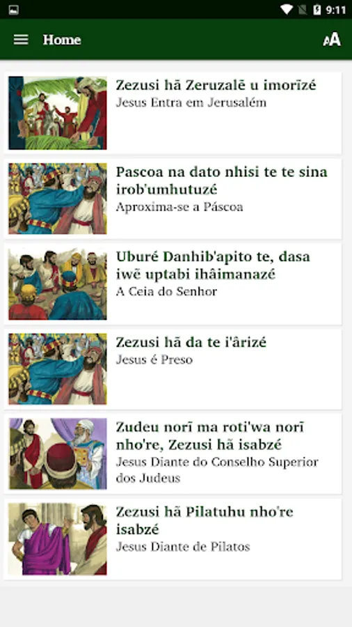 6 Bible stories with colored illustrations and music, on Jesus in Jerusalem in the days leading up to his death and resurrection, in the Xavante language, from the series: Illustrated Bible Stories in Xavante.