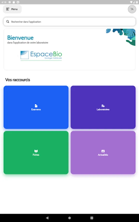 EspaceBio is a medical application intended for healthcare professionals (nurses, midwives and doctors) working with medical analysis laboratories. This application aims to support them in their debit acts.