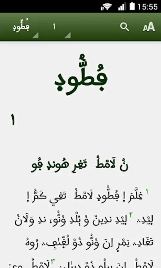 This application is the Bible in Fulfulde (Burkina Faso), written in the Arabic Script (known as Ajami).