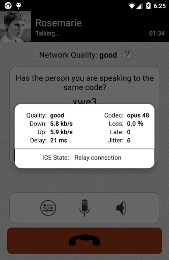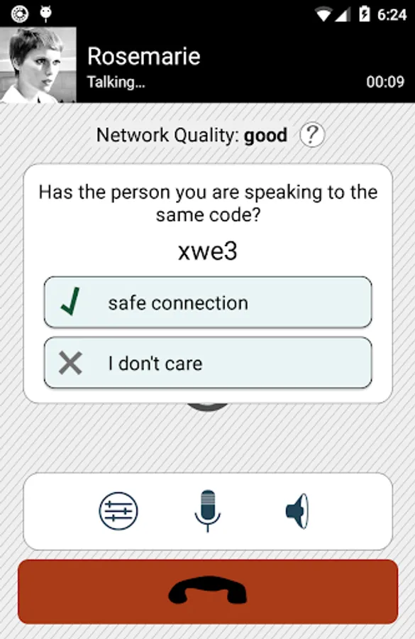 Simlar is based on the established end-to-end encryption protocol ZRTP. No one can listen to your conversation, not even us. During your first call, you need to match a short code with the person you are speaking to. This protects against man-in-the-middle attacks and only needs to be done once per contact. The app development is driven by the open source community. You can find the source code at simlar.org.