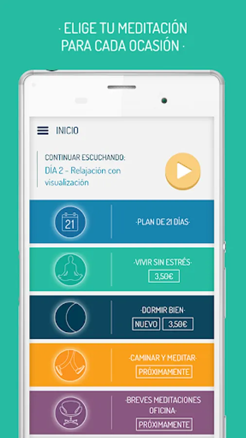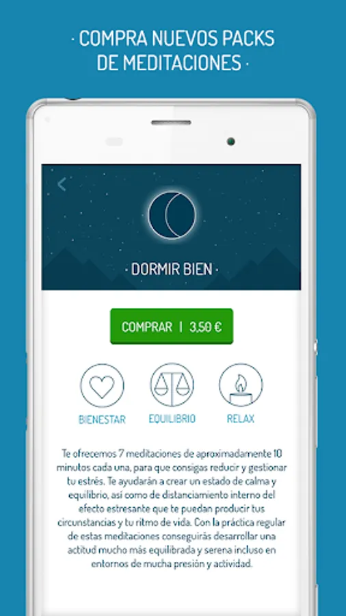 You have found what you wanted: With Meditate you can learn to meditate, to relax, sleep better, soothe your mind and much more. Meditate combines different relaxation techniques, visualization, meditation and Mindfulness, teaching in a simple way and accompanying you step by step.