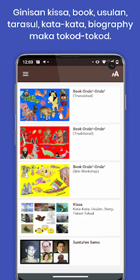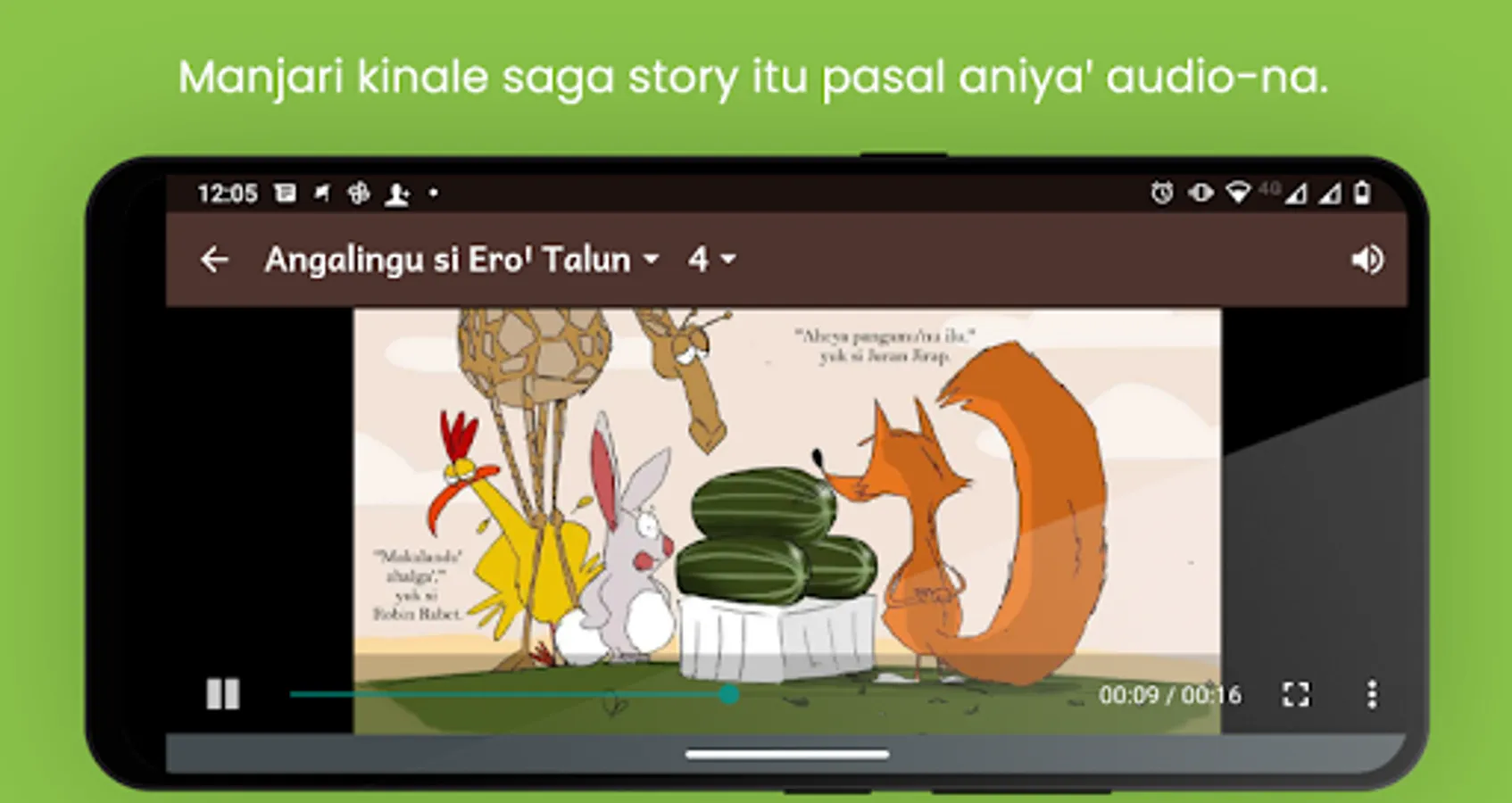 A collection of kissa, books, usulan, tarasul (poems), kata-kata, tokod-tokod (riddles) and other writing in Sinama. The app includes 55 titles with 100s of pictures and also audio recordings and sound effects for 36 children's books (book ondeꞌ-ondeꞌ). Children who don't read or are still learning can listen along to narration by Philippines Department of Education teachers.