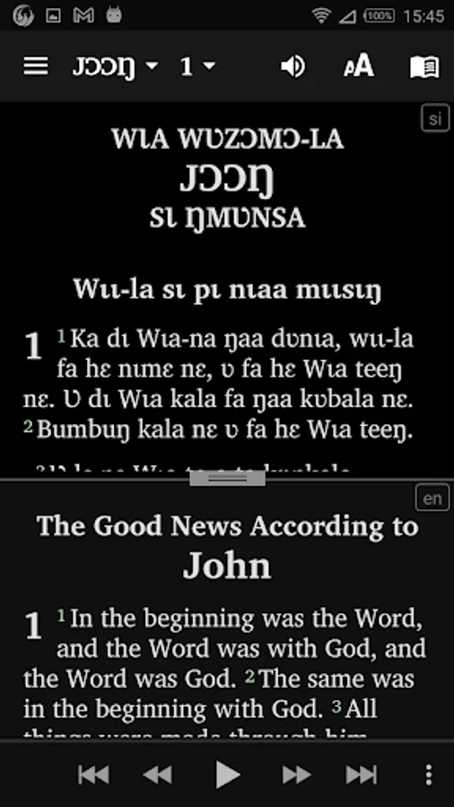 - "verse by verse" to display a verse in Sisaala followed by the same verse in English.