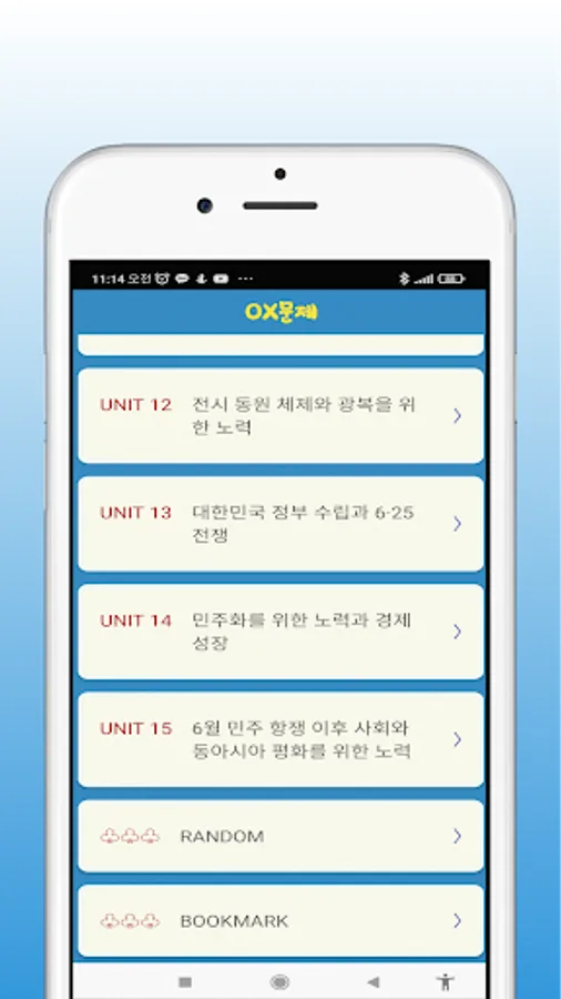 단원별로 순차 학습을 할 수도 있고, 랜덤 테스트를 할 수도 있습니다.