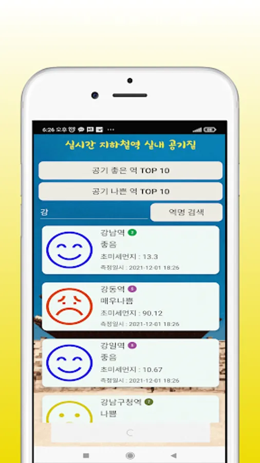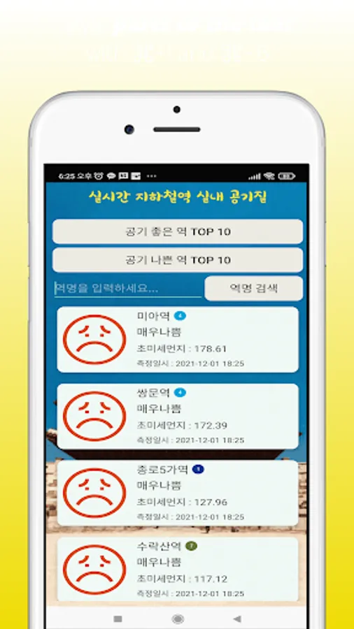 실시간 지하철 실내 공기 질 (대기 오염) Screenshots