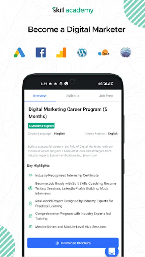 Skill Academy comes from the legacy that Testbook holds. We are trusted by a community of 3 crore+ students & offers a flawless online coaching experience. After making our mark in the exam recruitment sector, we are now on our journey to help the college graduates. With this initiative, we are now trying to help students with Courses such as Digital marketing course, Business Analytics course, Software Development Course and Data Science course.