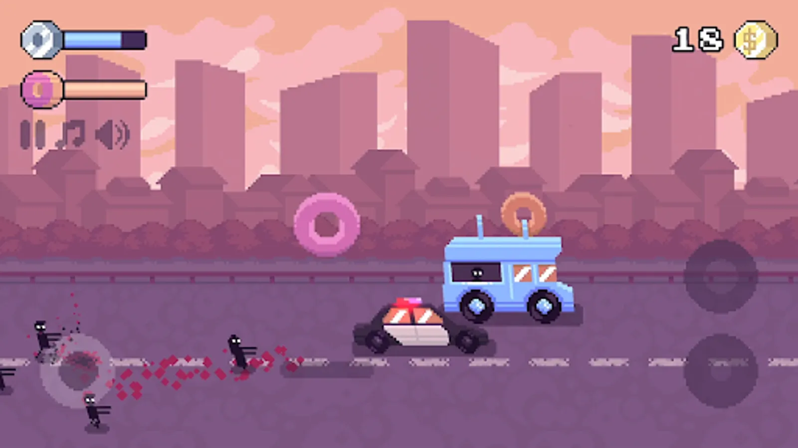 Bring sweet pain and destruction into this world! Feed people donuts until they get fat and then SMASH them to earn money! Get away from the police car by dropping BIG DONUT on its roof! Try to earn as much money as possible before getting caught!