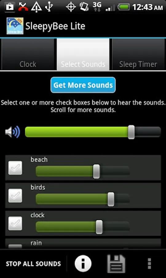 This lite version has limited ambient sounds. If you need more (50+ sounds), get the regular version of SleepyBee.