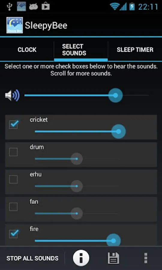 - Adjust individually the volume of every ambient sound you choose
