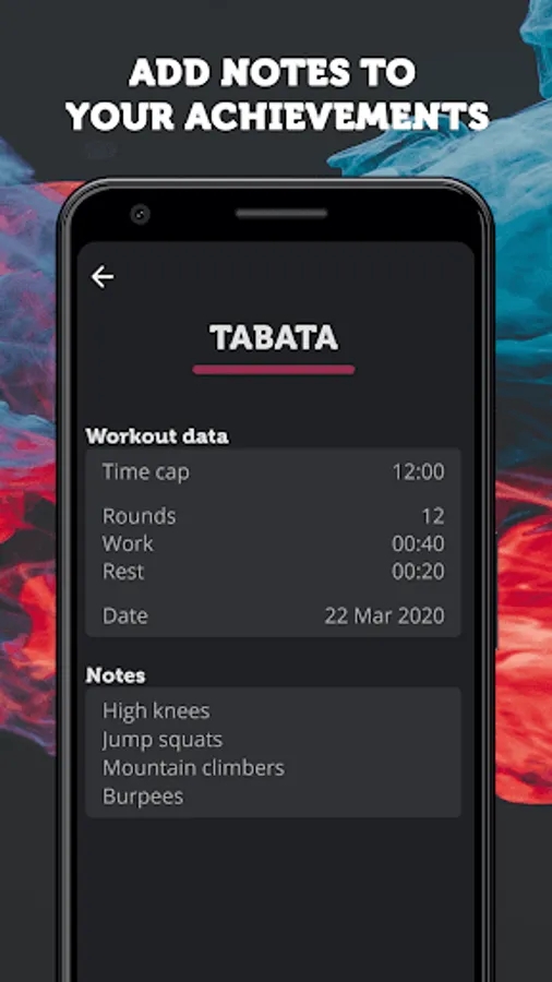 Tabata - The "Tabata" style of interval workouts or HIIT combines WORK and REST intervals. You can set your own time schedule, as well as the total rounds that you would like to complete.