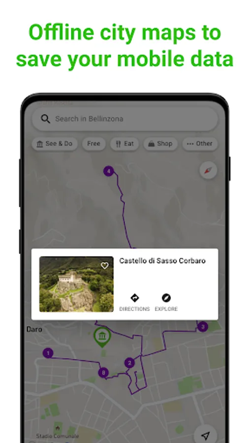 Download your Bellinzona city guide and get the offline maps and guide with our premium option so you don't have to worry about roaming or finding WiFi while you travel either. You are ready to explore off the grid and will have everything you need right in the palm of your hand!