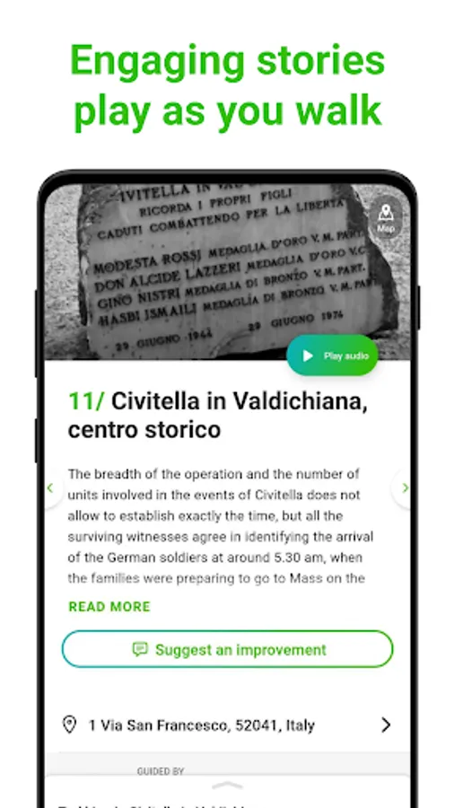 SmartGuide turns your phone into a personal tour guide around Civitella in Val di Chiana.