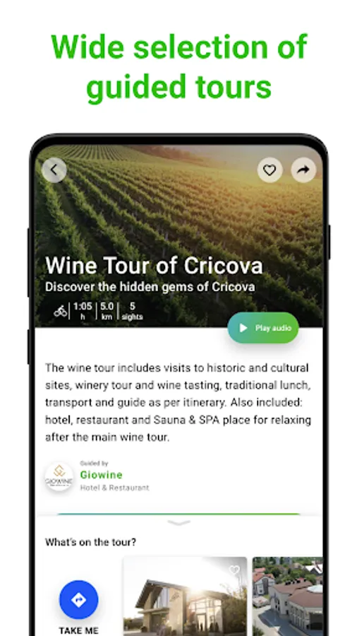 Whether you are looking for a self-guided tour, audioguide, offline city maps or you just want to know all the best sightseeing spots, fun activities, authentic experiences and hidden gems, SmartGuide is the perfect choice for your Cricova travel guide.
