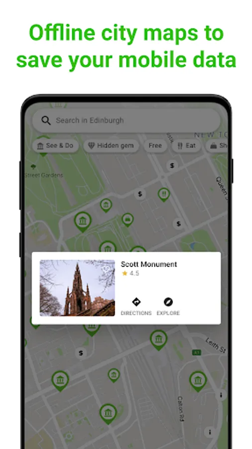 Download your Edinburgh city guide and get the offline maps and guide with our premium option so you don't have to worry about roaming or finding WiFi while you travel either. You are ready to explore off the grid and will have everything you need right in the palm of your hand!
