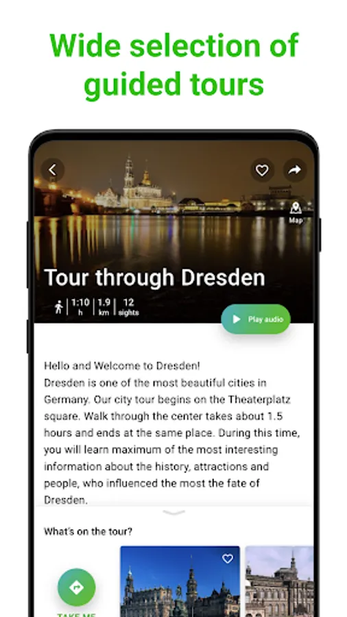 Conveniently listen to an Audio Travel Guide with interesting narratives from local guides that play automatically when you reach an interesting sight. Just let your phone talk to you and enjoy the scenery! If you prefer reading, you will find all the transcripts on your screen as well.