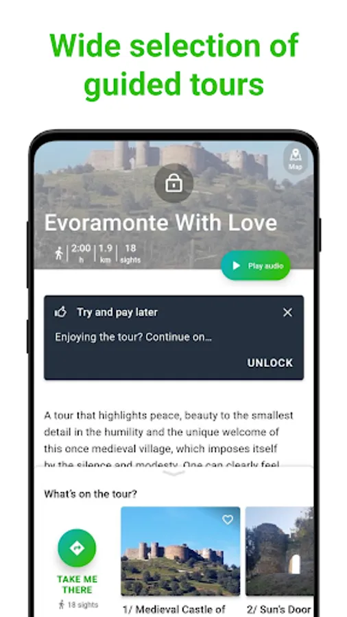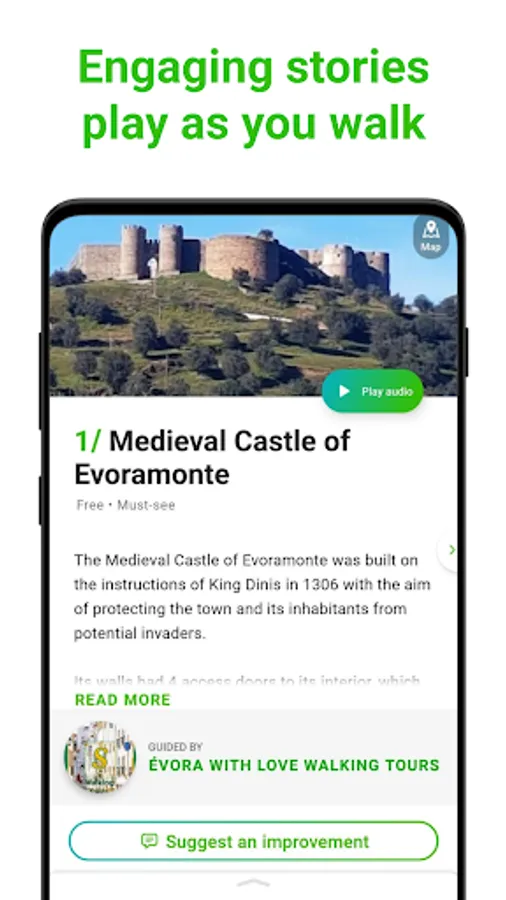 Whether you are looking for a self-guided tour, audio guide, offline city maps or you just want to know all the best sightseeing spots, fun activities, authentic experiences and hidden gems, SmartGuide is the perfect choice for your Evoramonte travel guide.