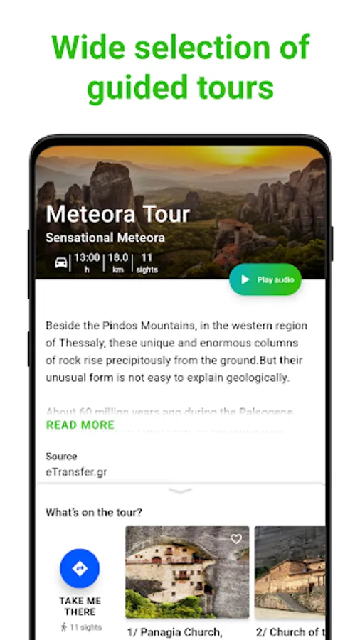 SmartGuide won’t let you get lost and you won't miss any must-see sights. SmartGuide uses GPS navigation to guide you around Meteora at your convenience at your own pace. Sightseeing for the modern traveler.