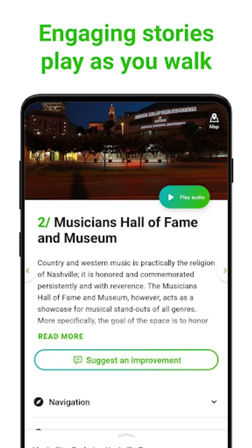 Whether you are looking for a self-guided tour, audioguide, offline city maps or you just want to know all the best sightseeing spots, fun activities, authentic experiences and hidden gems, SmartGuide is the perfect choice for your Nashville travel guide.