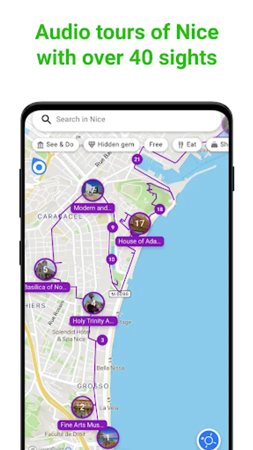 SmartGuide won’t let you get lost and you won't miss any must-see sights. SmartGuide uses GPS navigation to guide you around Nice at your convenience at your own pace and for free. Sightseeing for the modern traveler.