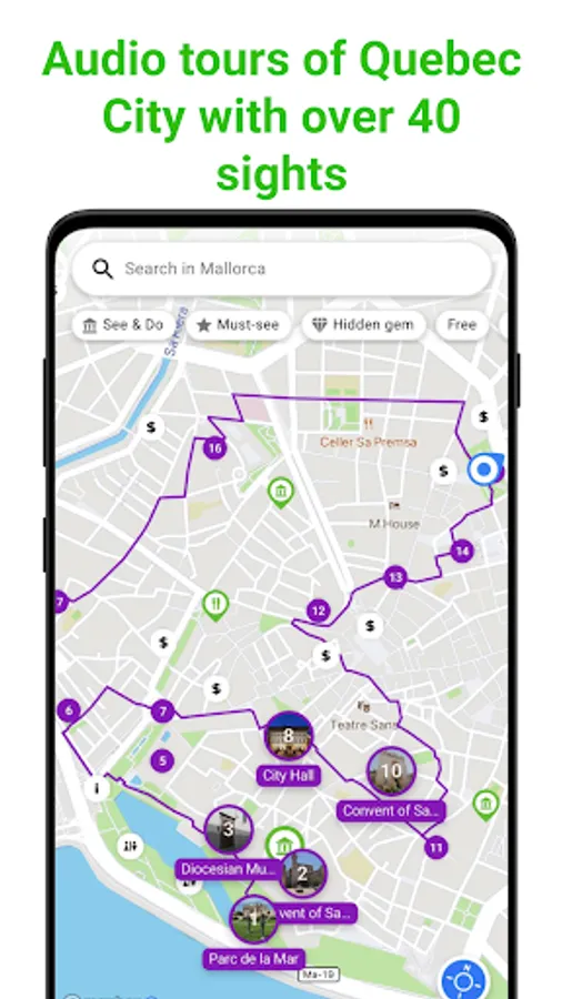 Conveniently listen to an Audio Travel Guide with interesting narratives from local guides that play automatically when you reach an interesting sight. Just let your phone talk to you and enjoy the scenery! If you prefer reading, you will find all the transcripts on your screen as well.
