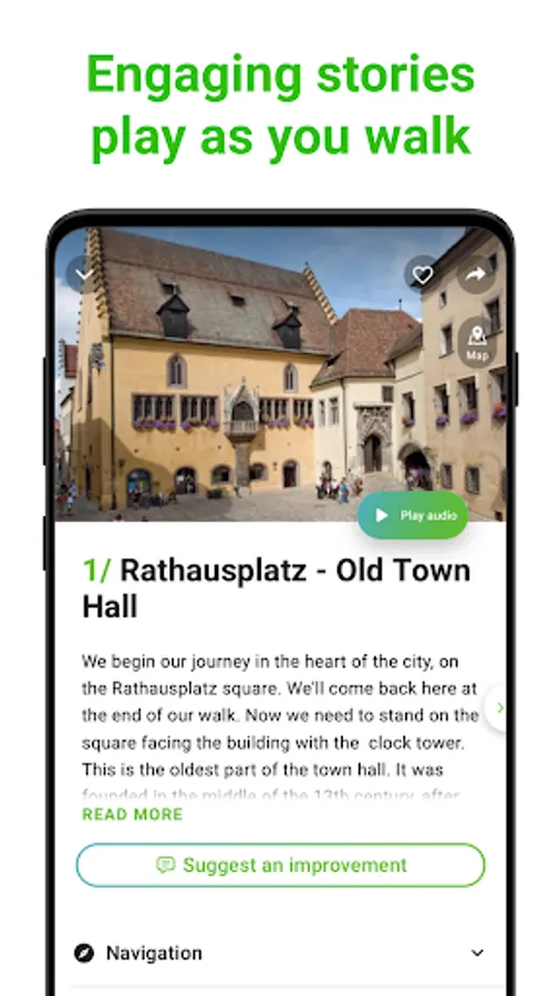 Conveniently listen to an Audio Travel Guide with interesting narratives from local guides that play automatically when you reach an interesting sight. Just let your phone talk to you and enjoy the scenery! If you prefer reading, you will find all the transcripts on your screen as well.
