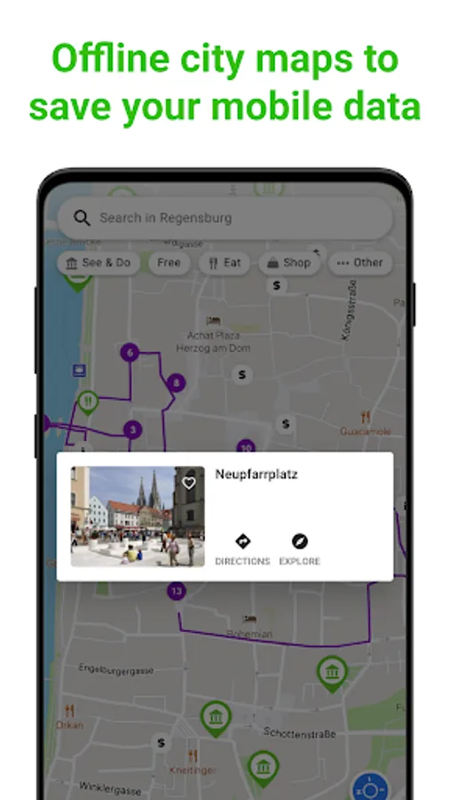 Download your Regensburg city guide and get the offline maps and guide with our premium option so you don't have to worry about roaming or finding WiFi while you travel either. You are ready to explore off the grid and will have everything you need right in the palm of your hand!