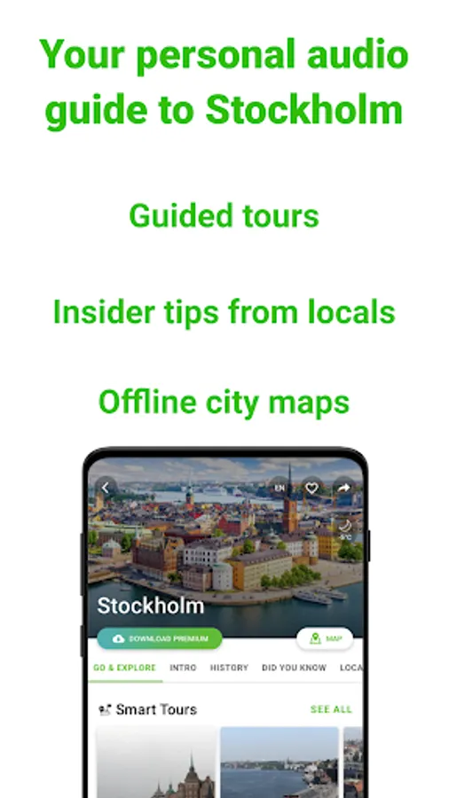 Whether you are looking for a self-guided tour, audioguide, offline city maps or you just want to know all the best sightseeing spots, fun activities, authentic experiences and hidden gems, SmartGuide is the perfect choice for your Stockholm travel guide.
