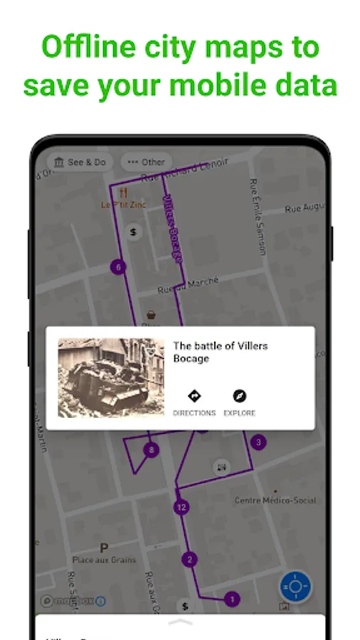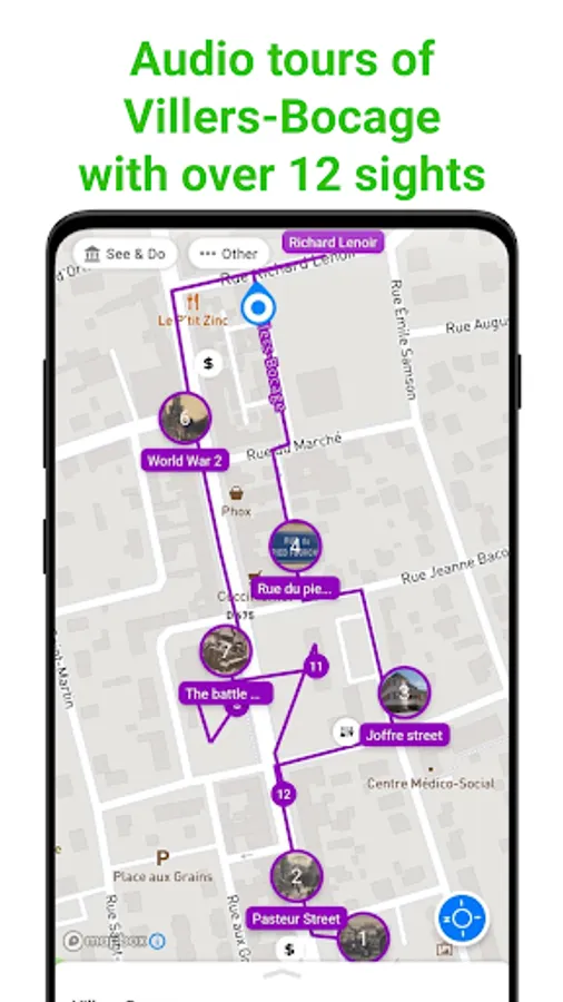 SmartGuide won’t let you get lost and you won't miss any must-see sights. SmartGuide uses GPS navigation to guide you around Villers-Bocage at your convenience at your own pace. Sightseeing for the modern traveler.