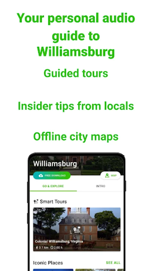 Whether you are looking for a self-guided tour, audioguide, offline city maps or you just want to know all the best sightseeing spots, fun activities, authentic experiences and hidden gems, SmartGuide is the perfect choice for your Williamsburg travel guide.