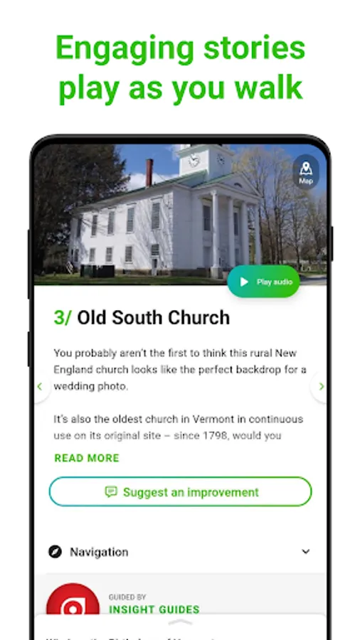 Conveniently listen to an Audio Travel Guide with interesting narratives from local guides that play automatically when you reach an interesting sight. Just let your phone talk to you and enjoy the scenery! If you prefer reading, you will find all the transcripts on your screen as well.
