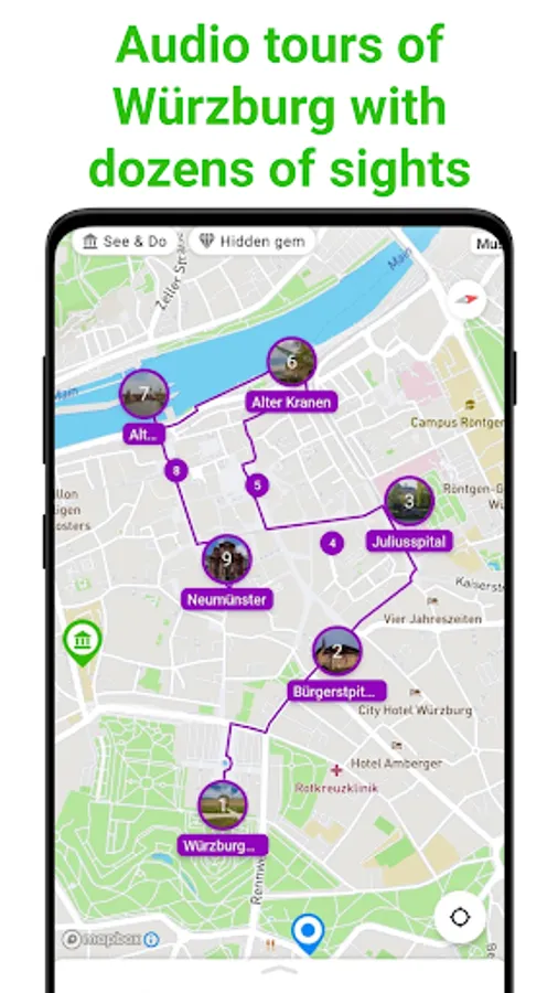 SmartGuide won’t let you get lost and you won't miss any must-see sights. SmartGuide uses GPS navigation to guide you around Würzburg at your convenience at your own pace. Sightseeing for the modern traveler.