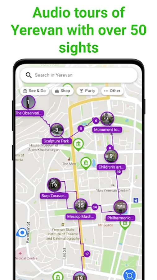 SmartGuide won’t let you get lost and you won't miss any must-see sights. SmartGuide uses GPS navigation to guide you around Yerevan at your convenience at your own pace. Sightseeing for the modern traveler.