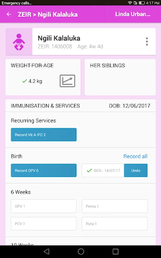 The Zambia Electronic Immunization Registry (ZEIR) was created for Zambia’s Ministry of Health to give to nurses working in public health facilities the ability to track the healthcare services provided to children under the age of five living in the facility’s catchment areas. The nurse can log into the application on their Android tablet to register children at birth and record all of their healthcare services until the age of five, including: vaccinations, weight, vitamin A, deworming, and bed net distribution. The app combines current mHealth best practices – automated scheduling and reminders, decision support, offline support, and automated reporting – to help nurses provide timely and quality care to the children in their communities. The app integrates with Zambia’s national health information system (HIS) to help automate the reporting process from healthcare facilities in Zambia to the district level.