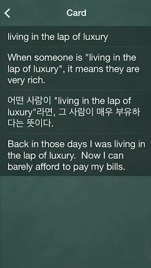 This app teaches Korean learners 500 useful idiomatic phrases of English. It contains over 20,000 words of content. It is a textbook written by myself and researcher/translator Wonkyung Choi, and is a collaboration with the best-selling app Flashcards Deluxe. This app contains 500 idioms, an explanation of them in English and Korean, an example sentence, fill-in-the-blank questions for each sentence, and pronunciation for all English contents. Also included is a custom quiz function which you can use and send your results to your teacher with via email. This app also automatically sends all items you miss often to a special “tough item” folder to make it easy for you to concentrate on them. What’s more is it features one of the most advanced Leitner algorithms on the market to help you learn more efficiently: you mark items you don’t know wrong and they come back more often, giving you the necessary exposure to master them. Items you mark correct don’t come back as often, so you don’t have to waste your time with items you already know. This method is proven by linguistics research to be the most ideal way to learn.