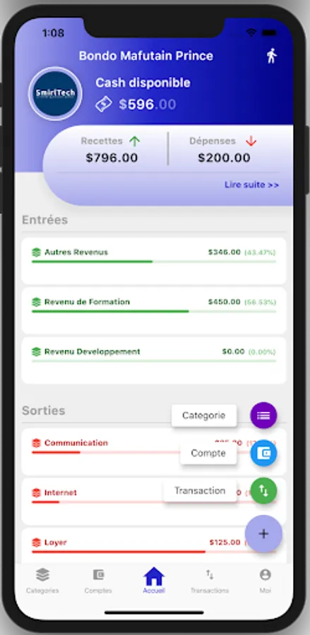 This app helps to record income and expenses as they are performed. This makes it possible to keep track of and check the evolution of these in order to be able to make thoughtful decisions in the future.
