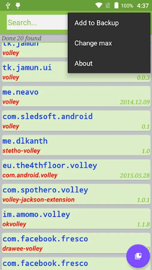 - Long-press of an item in the list and have the signature copied to clipboard.You just have to past it to your Gradle.