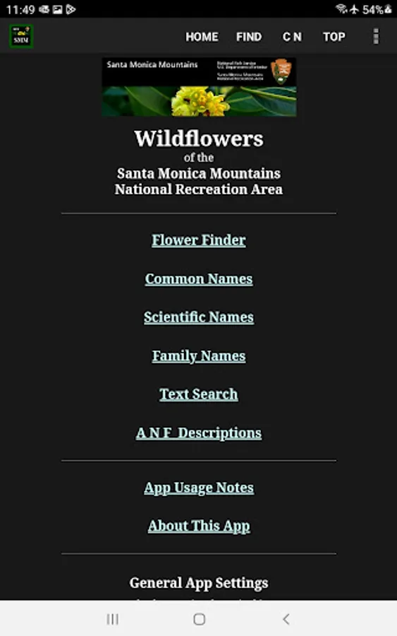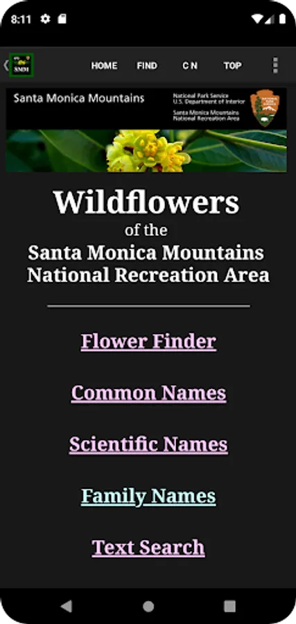The National Park Service invites you to take along a virtual botanist the next time you visit the Santa Monica Mountains. With over 1000 plants and 7500 photos, this App offers both novice and advanced wildflower enthusiasts the opportunity to identify common and rare plants while exploring remote areas of the Santa Monica Mountains.