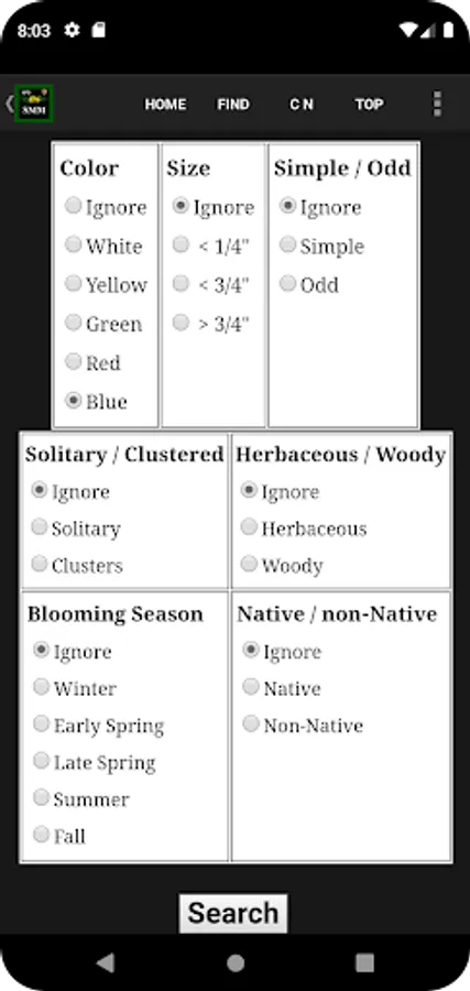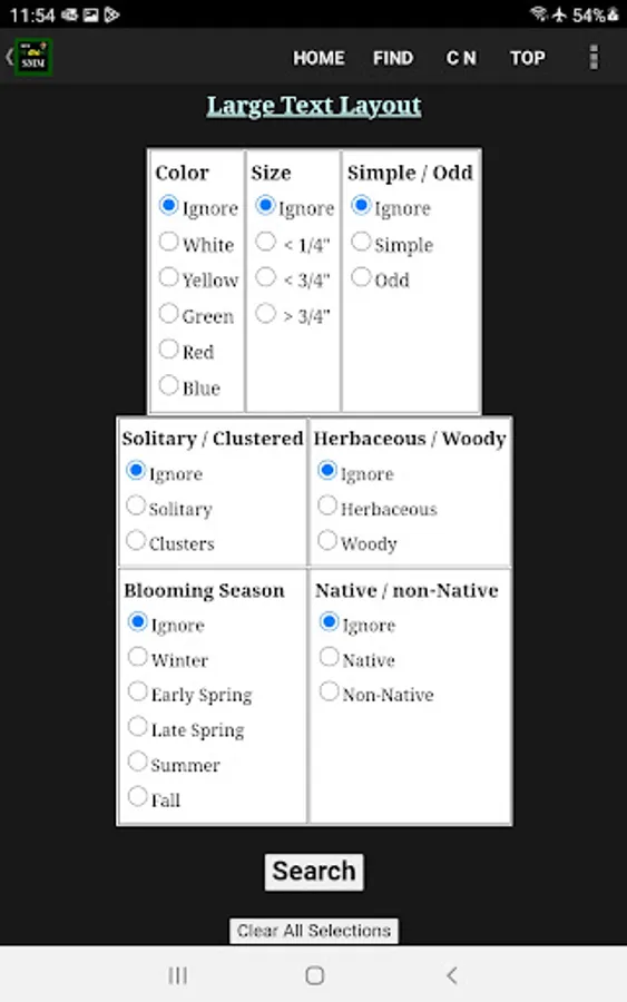 Visitors can choose several basic flower characteristics on the App’s interface like color, size and shape. Based on those characteristics, the App presents several possible photographs to compare to the actual flower. Flowers that are more difficult to identify often come with several photographs so that visitors can confidently make an identification.