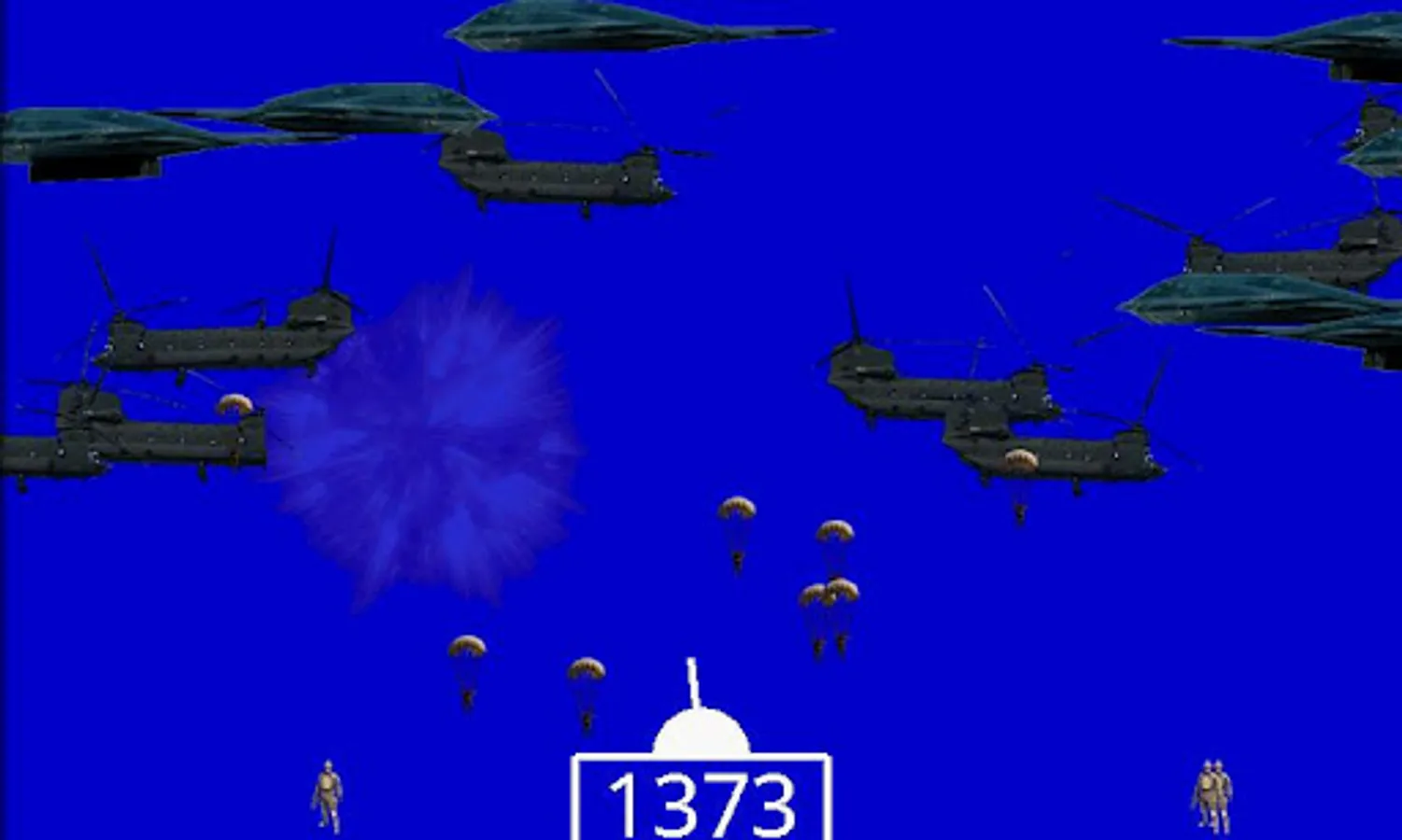 The concept of the game is extremely simple - you control the gun located in the center of the screen. The shoot targets are: helicopters, paratroopers, planes and bombs. The constant bombardment of your bunker additionally complicates the task.